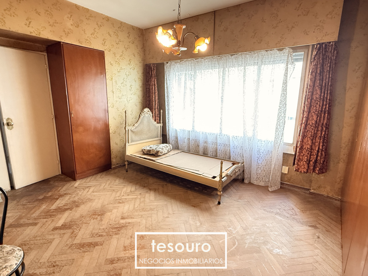 1 baños a reciclar. Con las dimensiones que cuenta el dormitorio de contrafrente y el baño principal, se puede generar un segundo baño. De esta forma puede quedar un baño en suite y otro completo.