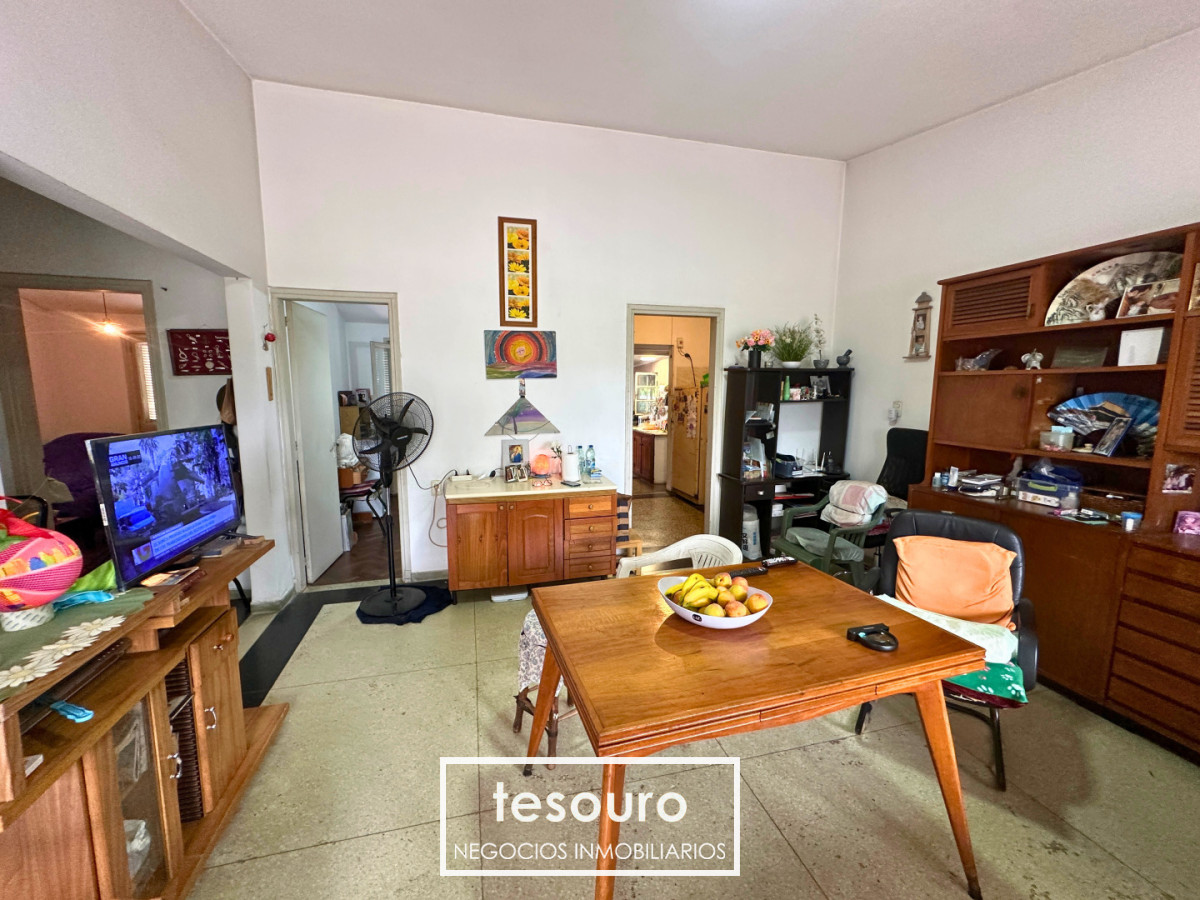 Primera casa al frente con cochera para varios vehículos, living comedor, cocina definida con comedor diario, baño completo, 3 dormitorios y salida a patio con parrillero.